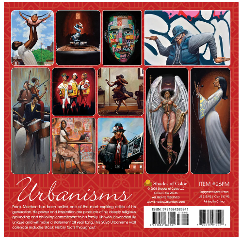 Experience the visual rhythms that choreograph everyday life in The Urbanisms 2026 Wall Calendar by Frank Morrison. One of the most aspiring artists of our generation, Frank seeks to highlight and preserve the soul of the city through urban iconography and Hip Hop culture. His work is wonderfully unique and will make a bold statement all year long. Black History facts are included throughout the Urbanisms 2026 Wall Calendar.
