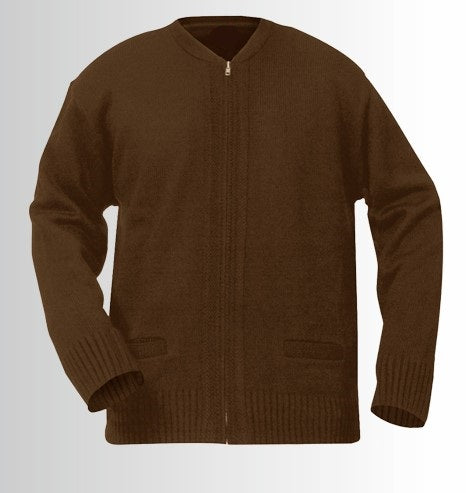 100% acrylic Heavyweight zip-front crew neck cardigan with 2 pockets