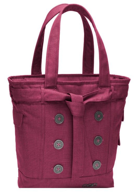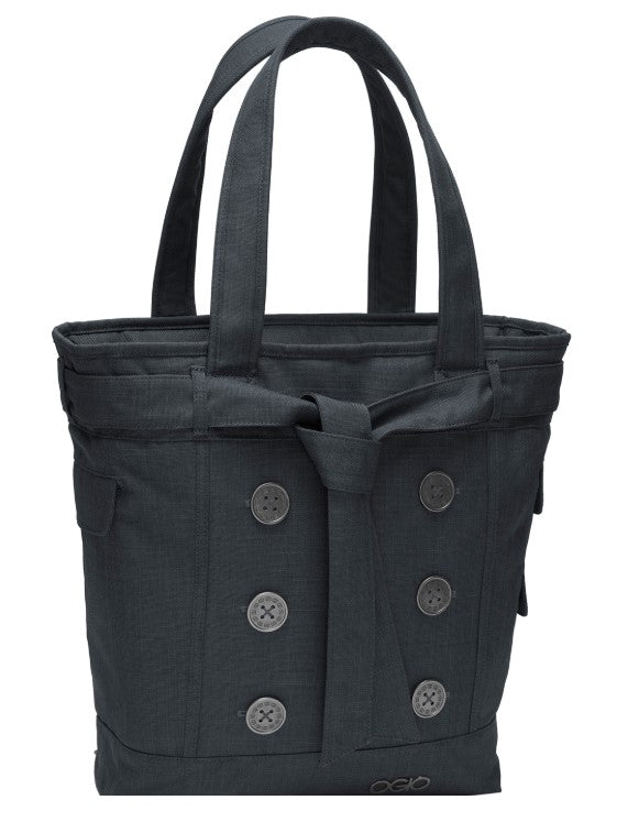 Large metal buttons give this feminine tote a classy look, while padded tech compartments make it perfect for work or school.
