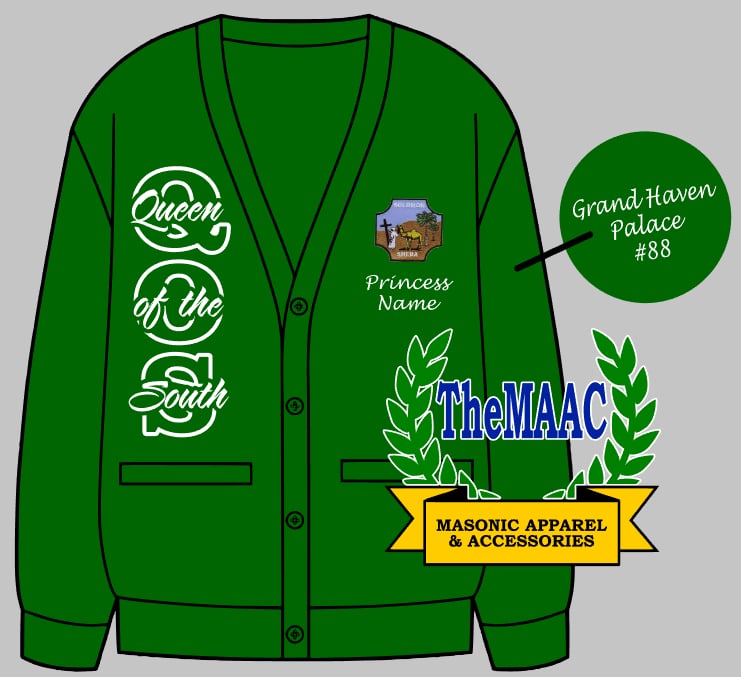 Our custom Queen of the South Solid Cardigans are perfect for any occasion. Promote your Palace in style and comfort.