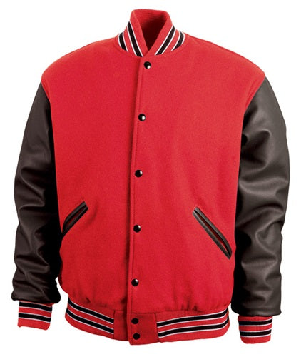 This letterman jacket comes in a variety of color options, perfect for showing your team colors. From the full-snap front buttons to the high-quality rib trim on the collar, cuffs and fitted hem -- everything is made of premium material.