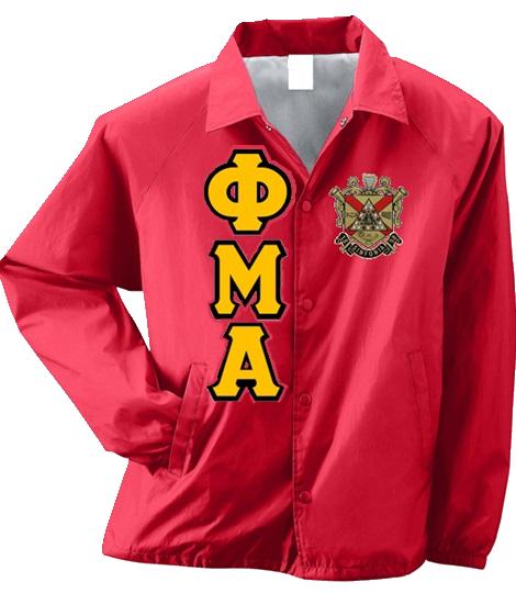 Phi Mu Alpha Light Lined Jacket is made to order. The design includes the Greek sewn-on Letters with a small embroidered crest.